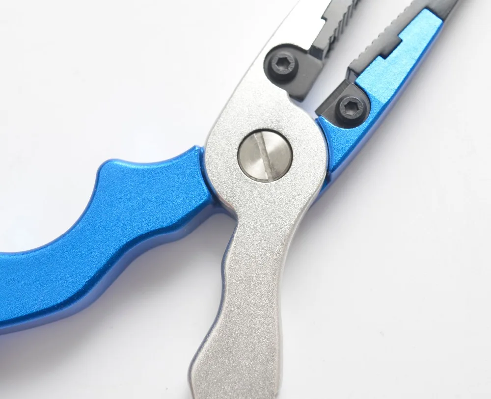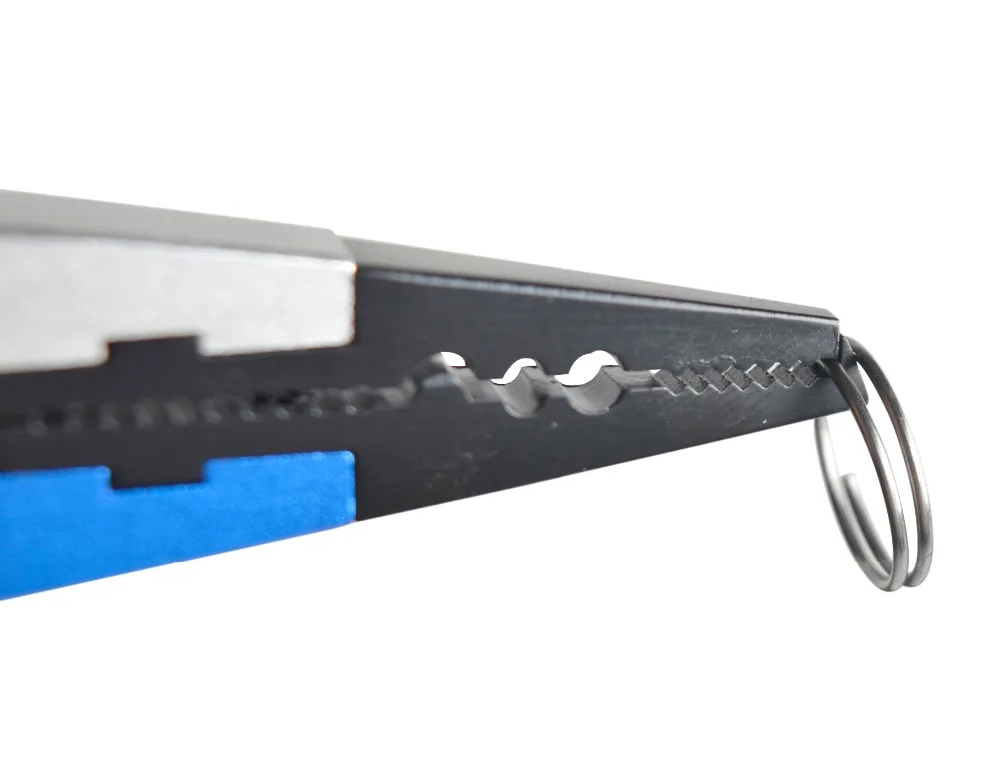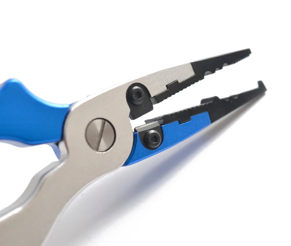 Corrosion-resistant stainless steel jaw inserts and the serrated jaws hold hooks secure for easy removal.