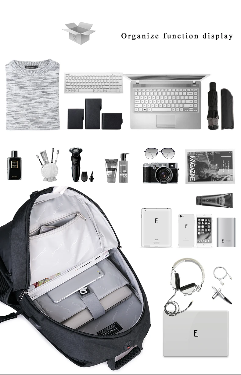 This Anti Theft Backpack is a game changer! Light-weight carrying and perfect for business, travelling, weekend getaways, school, shopping etc… External USB with built-in charging cable offers you a more convenient way to charge your phone while walking. Made from water-resistant polyester fabric, featuring a reinforced bottom and durable metal accessories.
