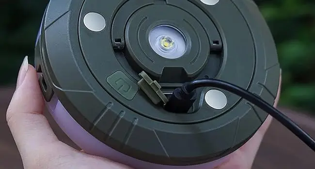 【Easy to Store and Portable】The camping lights string can be easily stored by quickly twisting the handle, taking less than 20 seconds. Weighing only 220 grams and with a compact design (diameter: 5.5 cm, height: 2 cm), it is lightweight and portable, fitting easily into a backpack to accompany your journey. Additionally, three magnets on the base allow you to attach this LED camping light to metal surfaces, such as bikes, cars, or tent poles.