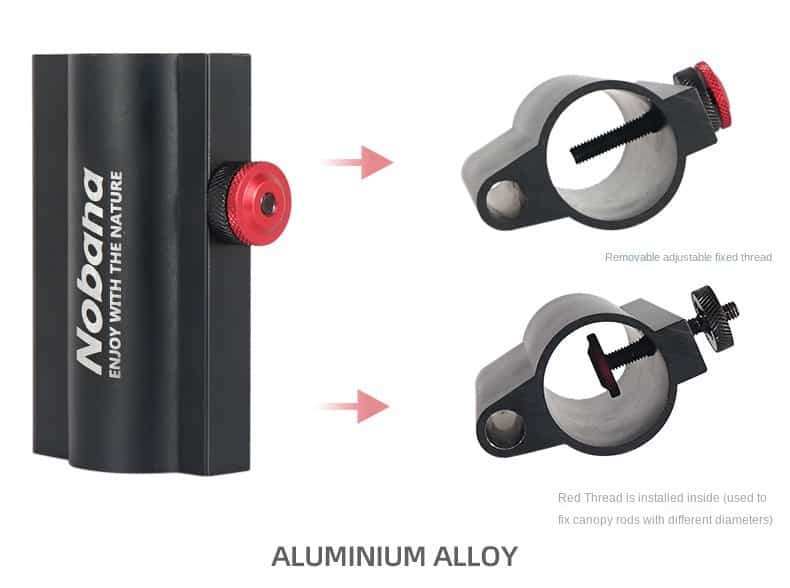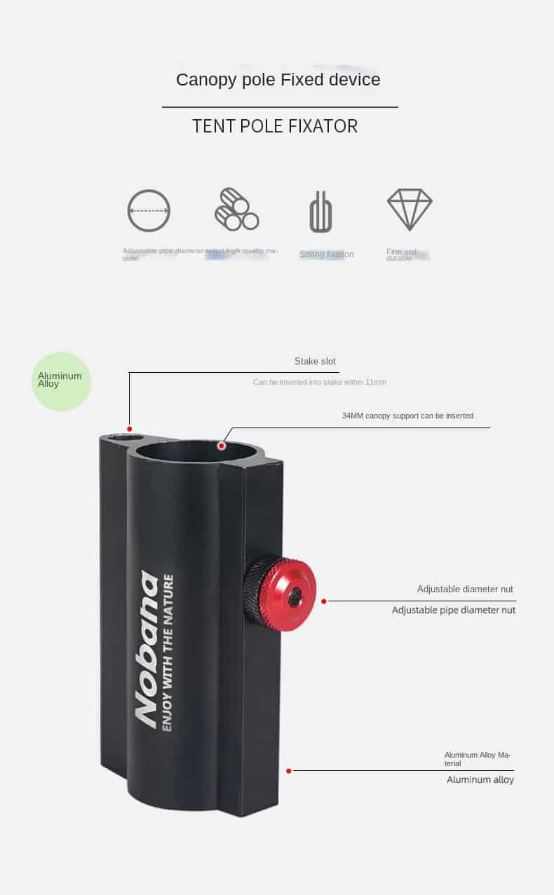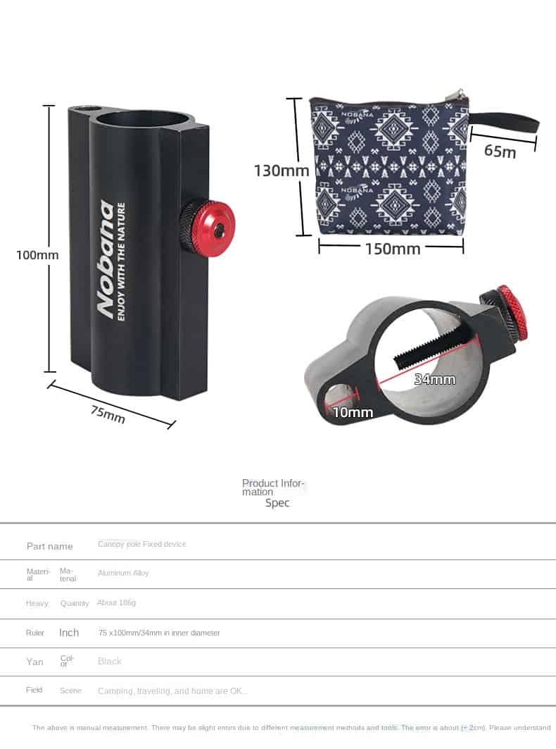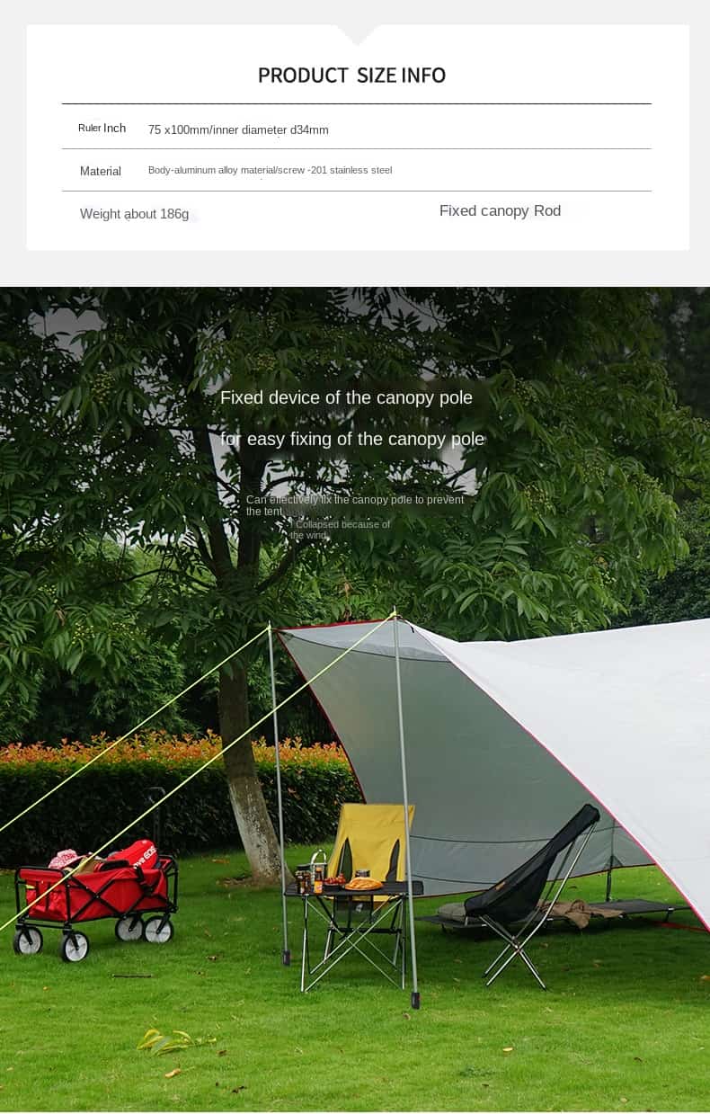 The Camping Tent Rod Holder is a tent accessory that can be used in a variety of ways. It is made of aluminum alloy and has a weight of about 186g. It has a diameter of 75x100mm. It is suitable for camping, traveling and staying at home.