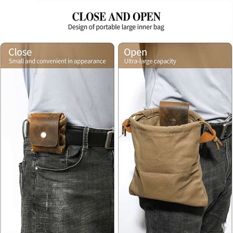 Whether you’re deep in the woods fighting for survival or just in your back yard picking berries, there are times when you need an extra set of hands or just a place to stash a few items as you go about your business. Let’s solve this problem with our Canvas belt pouch. This useful piece of gear folds up discretely when not in use and then with the unsnap of a fastener, it unfolds into a roomy pouch perfect for storing or carrying all sorts of things. If necessary, you can carry gloves, a water bottle, a lighter,… in it, so that you always have them at hand. The best part is that whether folded or unfolded the pouch is always clipped to your belt, leaving your hands free to tackle whatever tasks may come your way. It is suitable for adventure, outings, camping, etc. What are you looking for? Buy now!