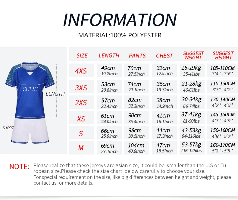 I ordered a form for a group of children 6-7 years. Focused on the description and size table. With dimensions guessed, fully corresponds to the description. The store offered to write a name, a number, but we refused, because we have not yet decided on the inscription. Thank you very much!
