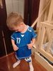 Took the smallest size, growth 116 big. Making T-shirt long proportions, shorts too wide. It seems to me that a freedom prevents movements, but child скастлив. ordered to another, delivery fast. worried about the inscription, carefully.