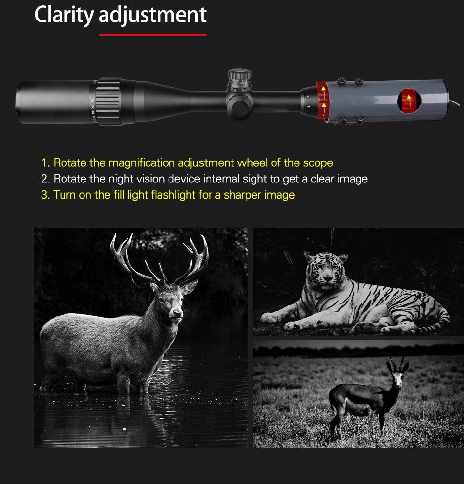 5. In the future application, if the image is blurred caused by the different distances of the objects, the image clarity shall be adjusted by side focus roller (and the parallax adjustment roller) attached with the optical sight. Do not move the machine lens, otherwise the cross line will be blurry.