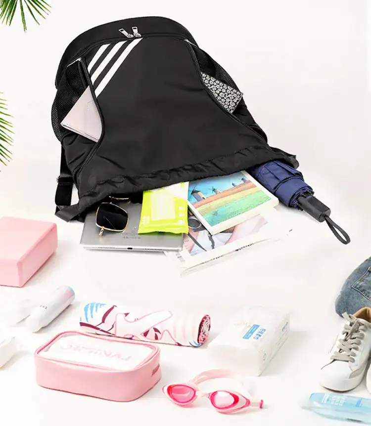 Are you looking for a backpack that can keep up with your active lifestyle? Look no further than the Drawstring Sport Backpack! This backpack is made of durable and lightweight material that can withstand any weather condition. It has a spacious main compartment that can fit your gym clothes, shoes, water bottle, and more. It also has a front zippered pocket for your keys, phone, wallet, and other essentials. The drawstring closure makes it easy to open and close, and the adjustable shoulder straps ensure a comfortable fit. Whether you’re going to the gym, hiking, biking, or traveling, the Drawstring Sport Backpack is the perfect companion for your adventures. Order yours today and get ready to enjoy the convenience and style of this amazing backpack!