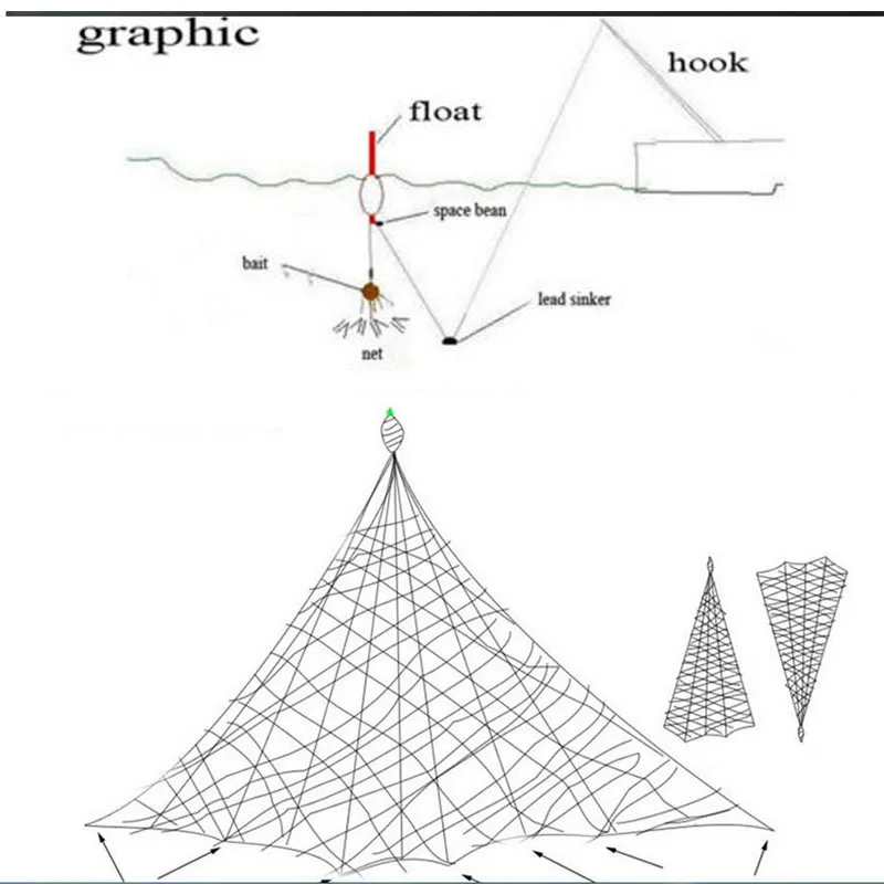 ➤Application: Fishing cast nets can be used to catch crabs, fish, lobsters, shrimps, crayfish, reptiles, etc. Then waiting for fish, shrimp, crabs and other aquatic creatures to swim into the net.