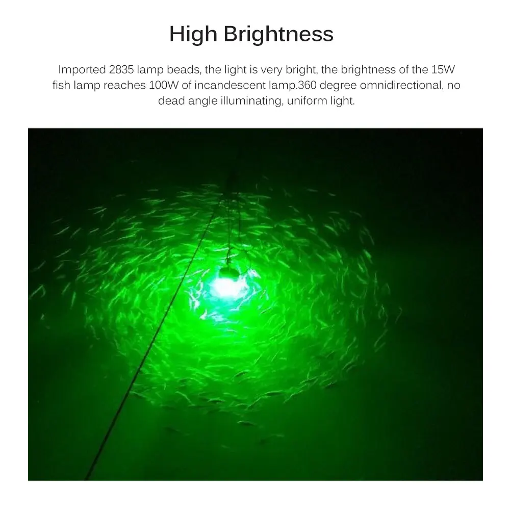 Locating fish at night can be hard, but our attracting fish LED light can make your job a whole lot easier by bringing fish to you. The powerful yet portable submersible LED light cascades a fish-attracting array of compelling green lights for a full 360-degrees of underwater coverage. Let’s toss our fishing LED light into the water and witness how it immediately attracts phytoplankton that tempts the best predator fish for you to catch. It has a 15W high brightness that’s perfect for many applications, such as boat docks, piers, or even your boat or for ice fishing… This 12V fishing light can be used in saltwater, freshwater, river, or lake. Jump-start the food chain and catch more fish! Buy now!