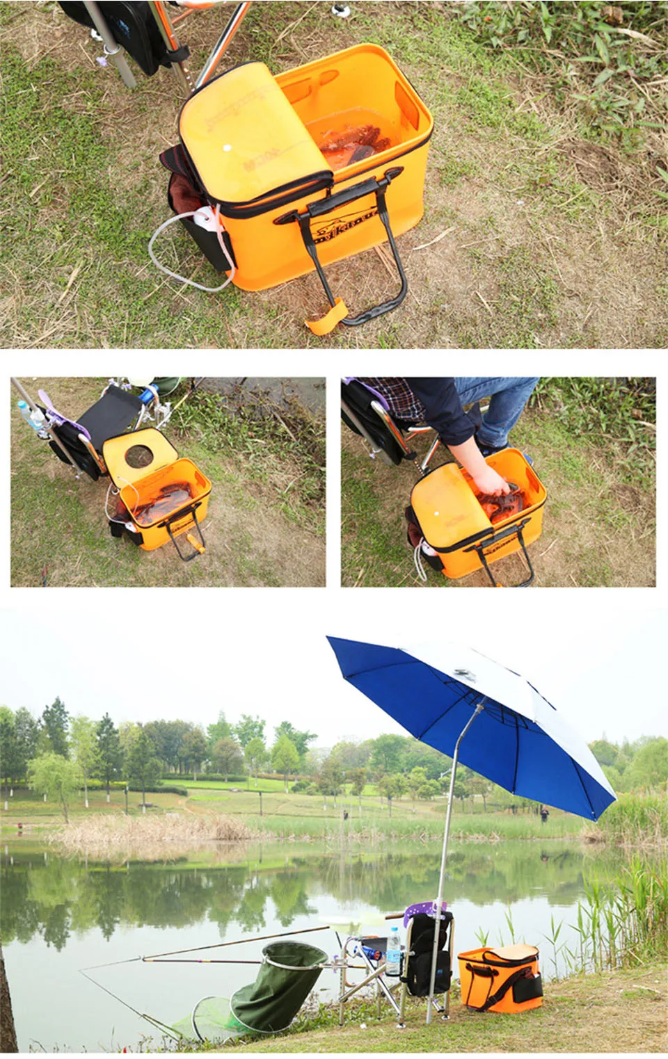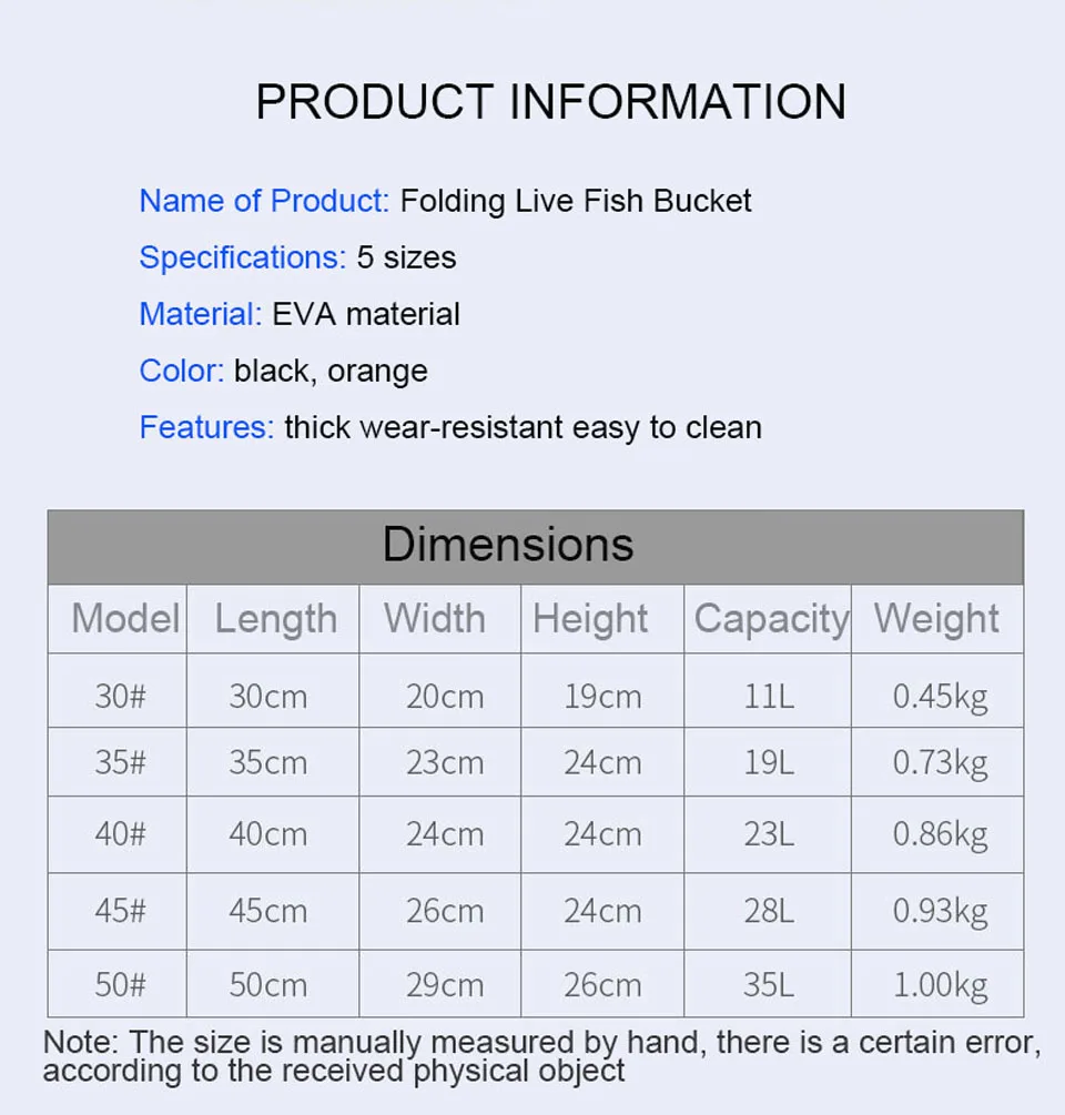 You are on a fishing journey with your family or friends? Introducing this Portable waterproof fishing bucket, it is the perfect ideal for fishing, camping, barbecue, boating, gardening, bait storage, and any other outdoor activities. By filling it up with water, you instantly have a handy basin where you can put in fish, shrimp, live bait or other things with an oxygen pump to keep them alive. The box has a professional design save space for easy storage, good compression resistance, strong heat preservation, lightweight suitable for long-distance transportation, and with top cover mesh pocket design, fresh air circulate, live bait and fish can stay alive. Get it now!
