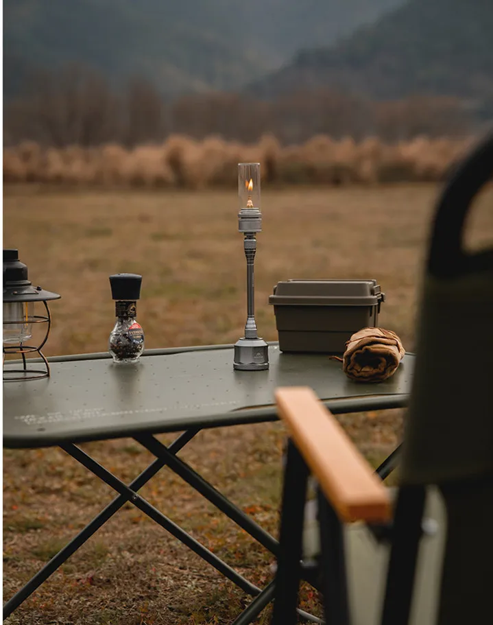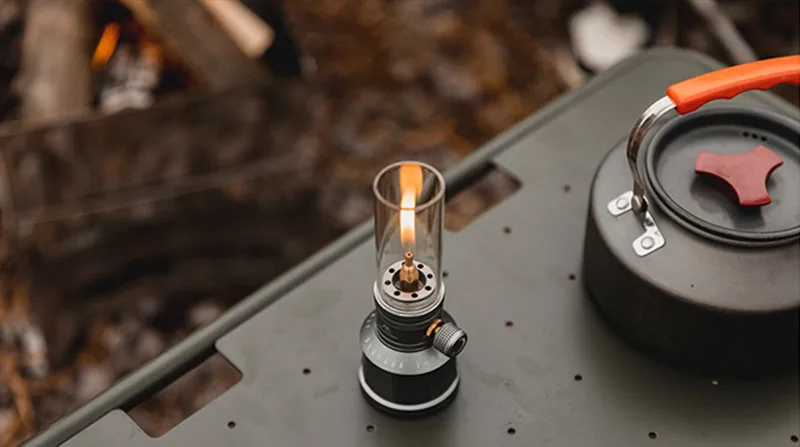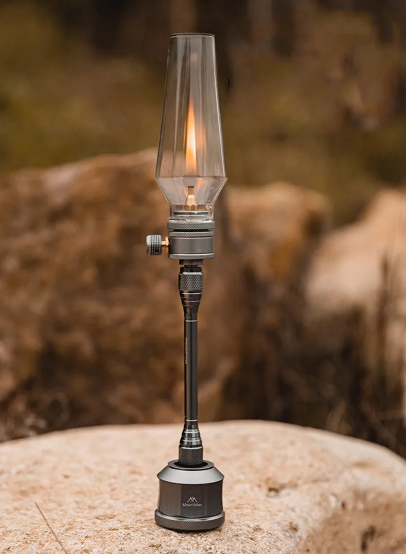 This camping gas lantern provides soft light that flickers like a candle, creating a great ambience. The light stand is adjustable.