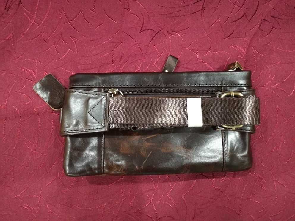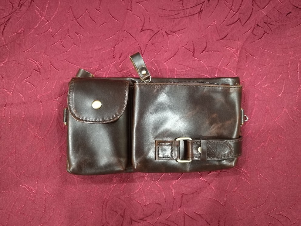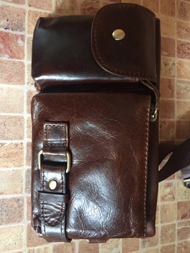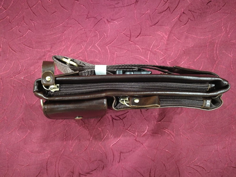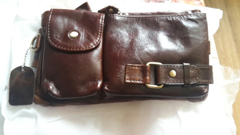 Peter came very quickly in 8 days. Everything came in a bag with a puffy. The bag is stylish. Sewn neatly, zippers all work well. Made of genuine leather. Only the size personally seemed not very successful to me-the phone in the case of 6,2 inches is placed only in a large compartment, as well as a purse with rights. But again, the bag is very effective and looks much more expensive than its cost! Thank you to the store, whom i can safely recommend to everyone as a good partner!