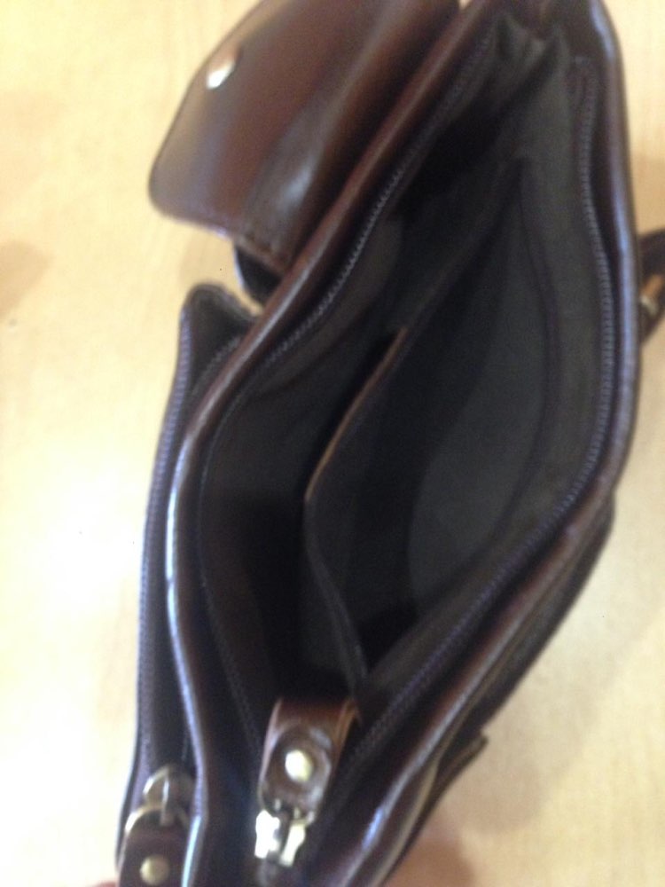 Beautiful bag. Nice leather, nice color. A lot of space. Exactly what I needed for my wallet, keys and phone. Only one thing. Ziiper on wallet pocket is smaller then pocket and its hard to give there my wallet. So it's not easy to put it in and out. But its OK My wallet is 11x9x4 cm dimensions.