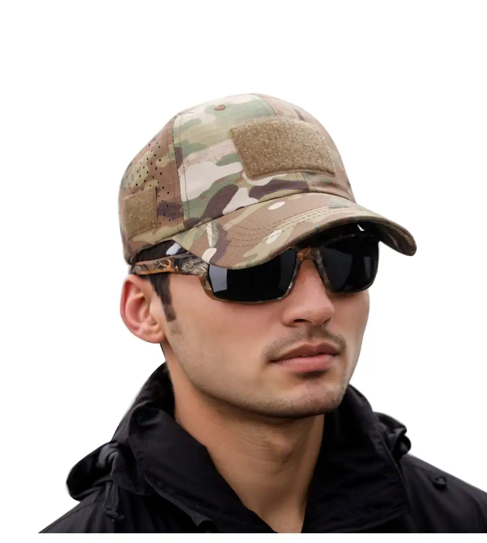 Crafted from rugged ripstop camo fabric with UPF sun protection, this hat with built in sunglasses is built to endure harsh conditions while keeping you cool and shielded. Strategically placed mesh vents enhance airflow, while the innovative sunglasses slot above the brim ensures quick access to your eyewear. Designed for versatility, it’s perfect for hiking, training, or everyday wear—delivering a low-profile, adjustable fit with a tactical edge.