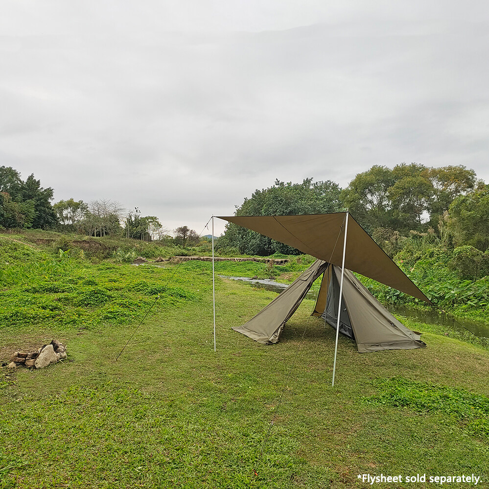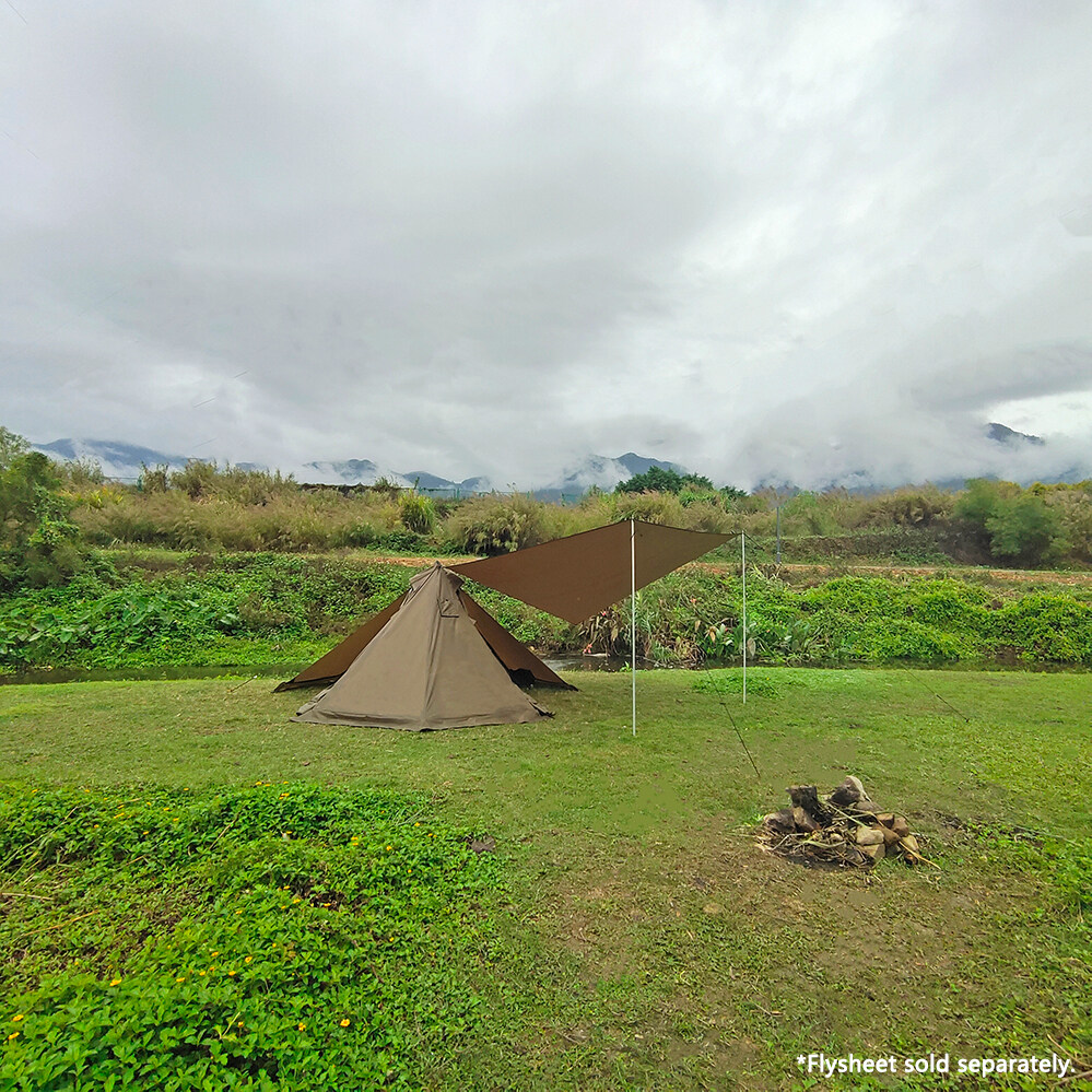 Note: The stove, chair, sunshade(flysheet, the square tarp), etc. in the picture are only used as shooting props, not included in the tent.
