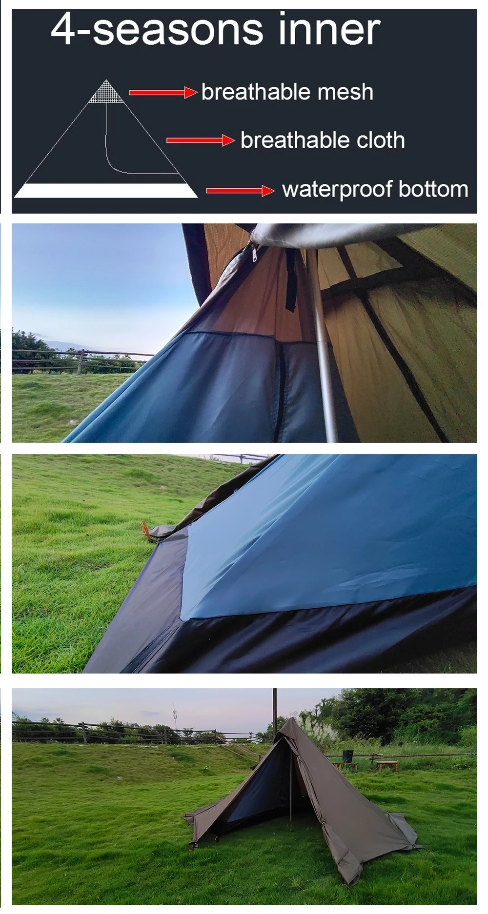 3-seasons inner is mainly made of mesh, It has better breathability and is suitable for seasons with higher temperatures.