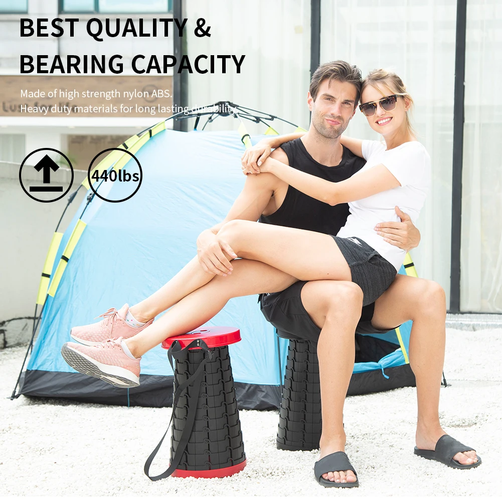 Incredible Retractable Stool Sturdy Portable Lightweight Plastic Stool, Holds up 440 lbs, Outdoor Travel Camping Fishing Garden Folding Stool