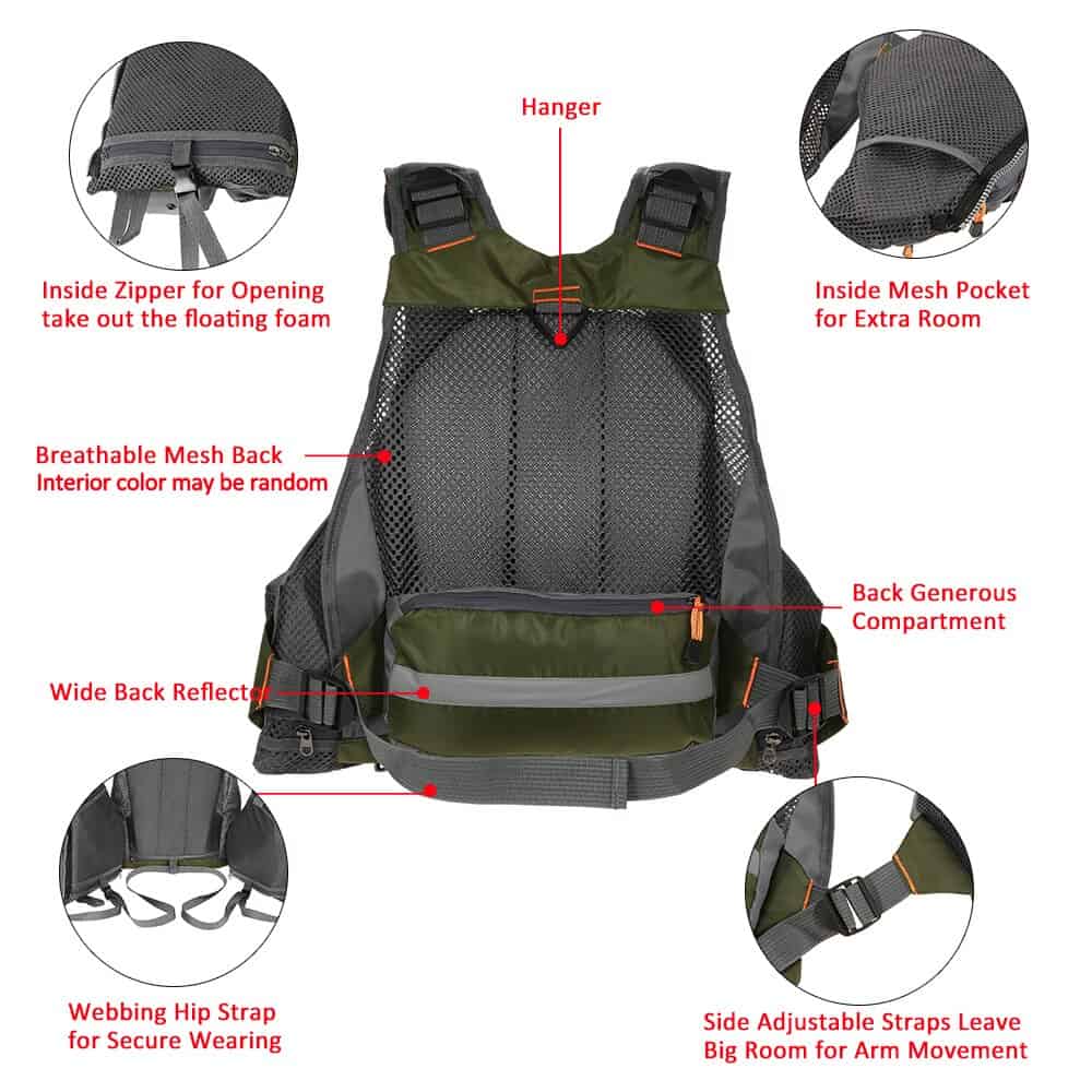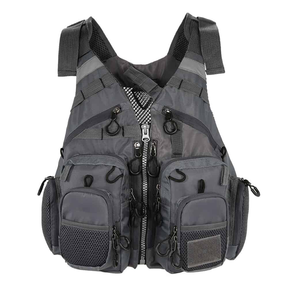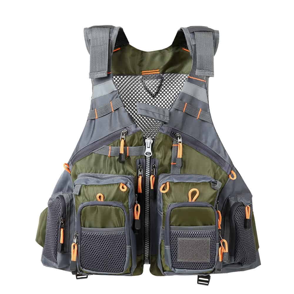 This fishing Life jacket looks more like an outdoor vest with a total of 11 zippered pockets and multi attachment Ladders and accessory loops on its front and side reflectors on the back and shoulder. Underneath the exterior, it’s a fully functional flotation device which is detachable for functioning as a shear fishing gear carrier. And this vest will fit almost any person due to webbed adjustable buckle straps. If your main priority is gear storage, this life vest is one of a kind. It’s great for fly fishing, kayak fishing, canoe fishing (pretty much any type of fishing).