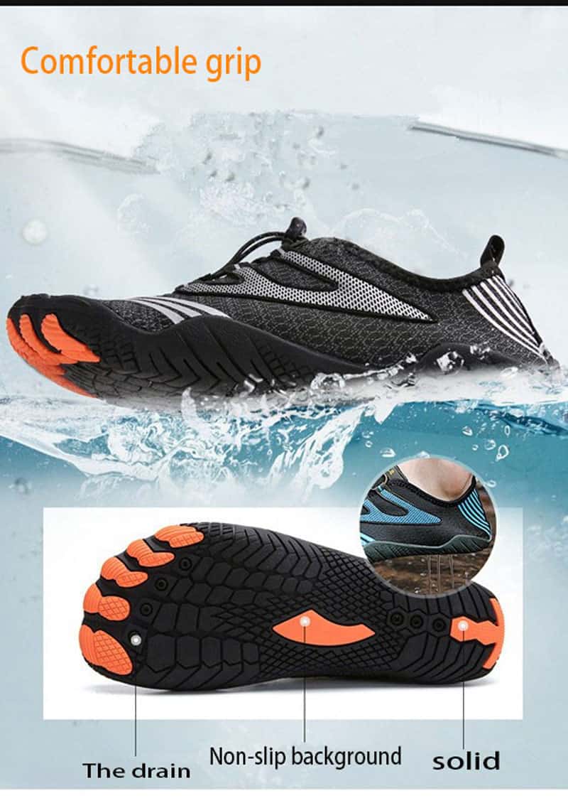 You want to enjoy protection and comfort in your travel adventures & favorite water activities. Our quick-dry water shoe which is extremely durable due to the high quality sole and can therefore cope with any ground condition, such as in the cliffs, asphalt or in the water. Due to the special materials, the shoe is also above average light and breathable. It’s the most comfortable men water shoes you’ve ever had on.