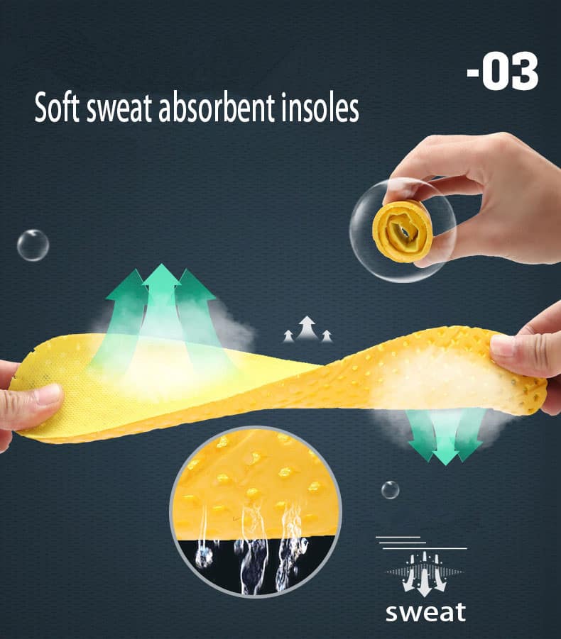The insole is made of EVA, which is soft and sweat absorbing to prevent peculiar smell inside the shoes and keep foot clean and comfortable.