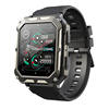 Its another military style, outdoor rugged smartwatch, the Military Style Rugged Smartwatch has that outdoor design, sporty. It has a mechanical look, layered frame with screws, octagonal size, PC material with combination of metal material. It has power buttons, power with dedicated sports button on its side. It is an attractive-looking rugged smartwatch, its not bulky like other rugged smartwatches in the market. The design of the Military Style Rugged Smartwatch is in the range of the popular Kospet Tank M1. The C20 Pro smartwatch has an outdoor look, and its frame is bump roof, that has an anti- smash body, anti-freeze body.