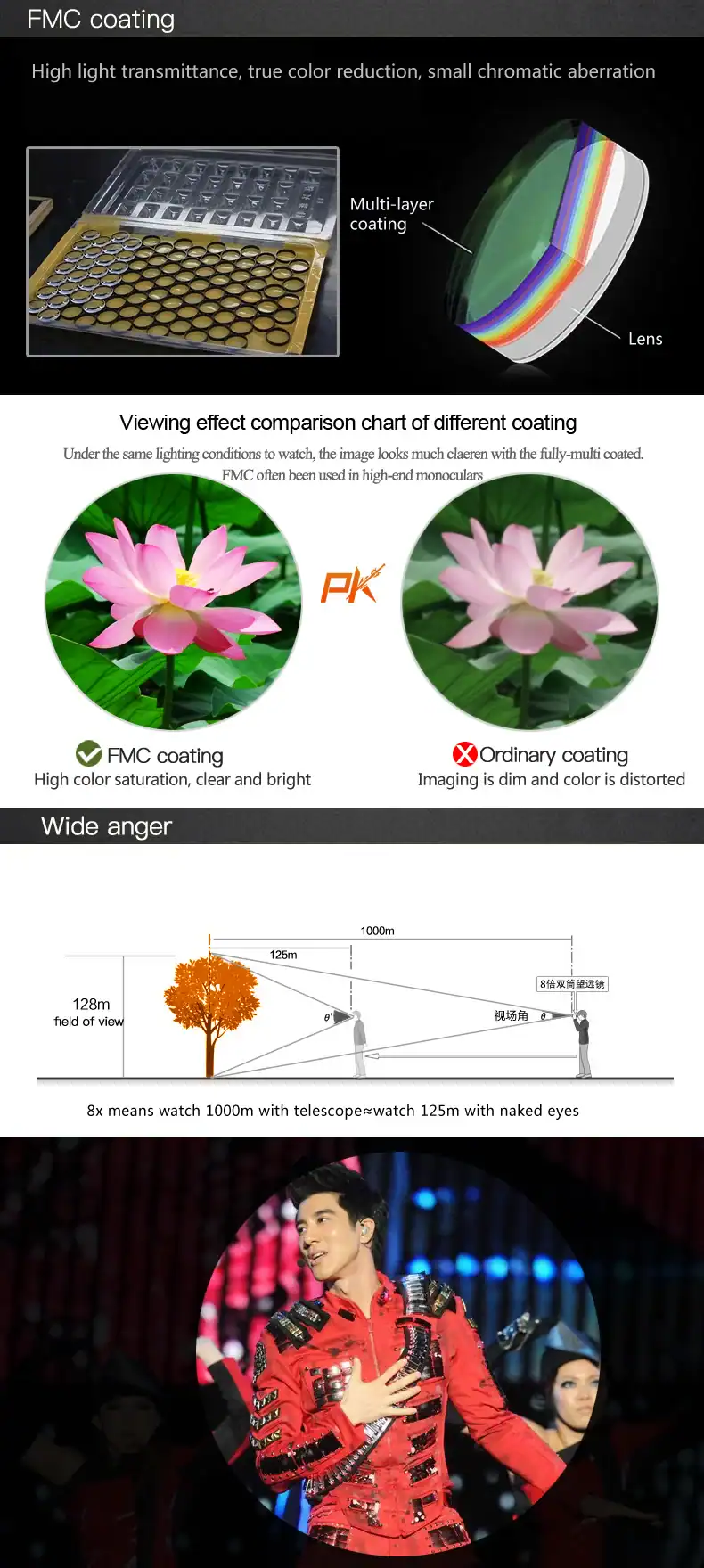 [High Quality Optics Parts]Our Monocular Telescope feature high quality prisms and full multi-layer coated lenses. Minimize chromatic aberrations, giving you images with superior contrast and excellent resolution. Multi-layer prism coatings provide bright, clear images and natural colors even in low light conditions.