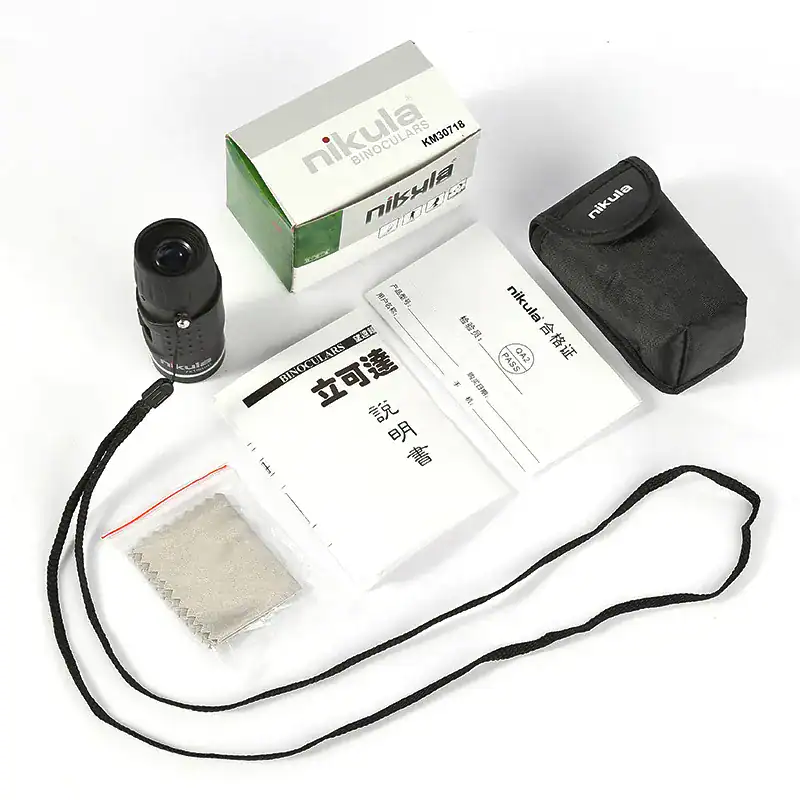 Features: Condition: Nikula Great for hunting, traveling, camping, hiking, watching match, fishing, golf, etc. Brand: Nikula Model: 7×18 Objective lens diameter: 18mm Field of view: 147m/1000m Magnification: 7x power Exit pupil diameter: 2.6mm Exit pupil distance: 10mm Can be measured distance: 200m/200yards Ideal for long distance viewing needs Perfect gift or Home Decor item for all ages
