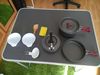 Kettle is very small 0.8 liters maximum Poured into it 1.1 liters as in the description the cover floats from it, the quality is normal I would say that this tableware is more for one than two, the place takes very little, for solo fishing the most that the dimensions are excellent, the mounts do not stagger quickly break should not, i hope that for 2 seasons enough