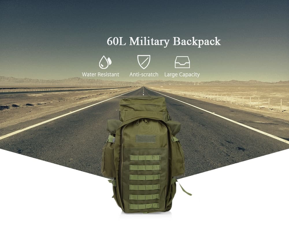 Stay agile in the field by packing your hunting gear in the 60L Outdoor Military Backpack. This large pack features several large compartments to store your gear and accessories. Padded belt at your waist helps you support the load and keeps you balanced. Hauling gear will be easy and moving quickly everything you need in the field with it.