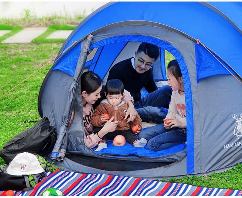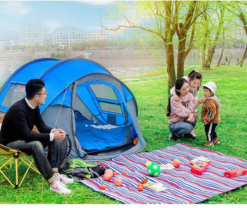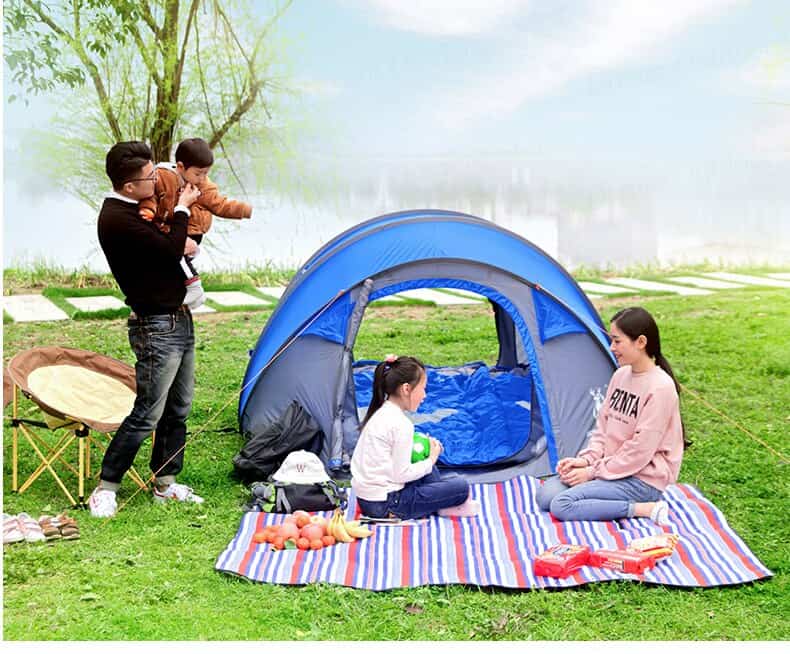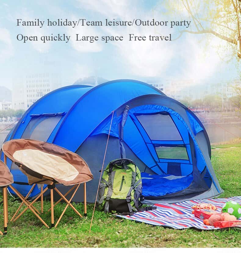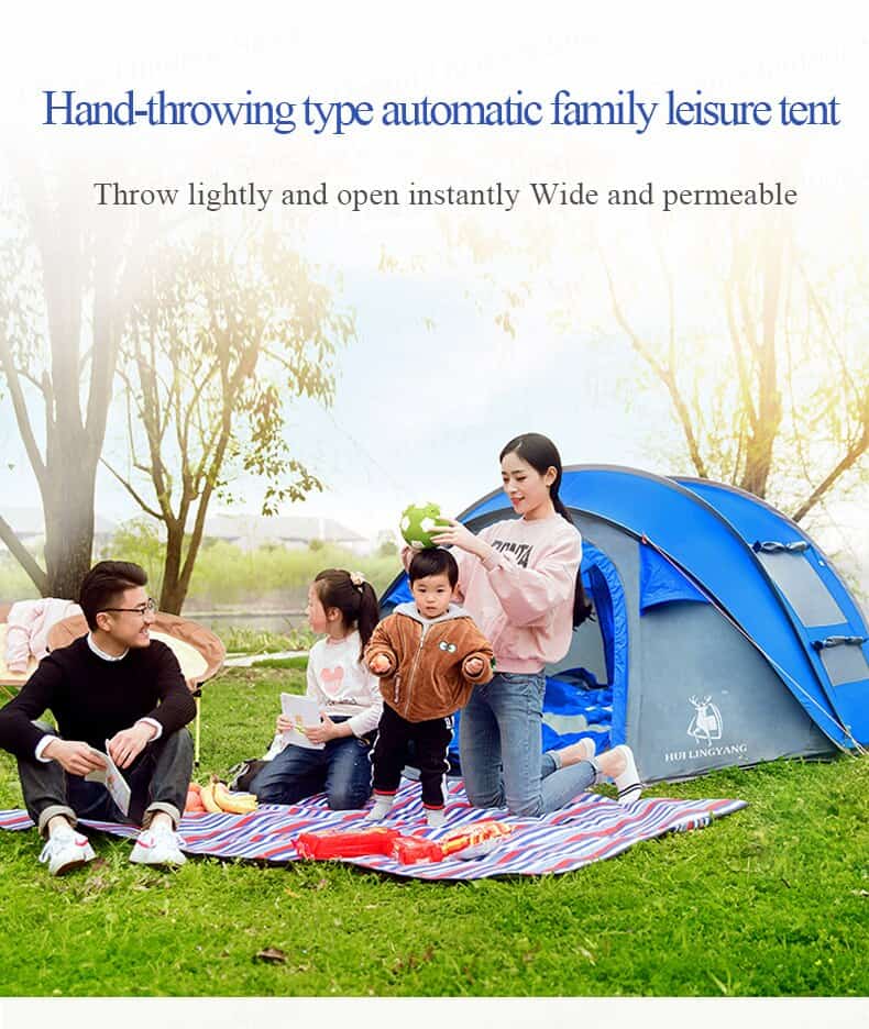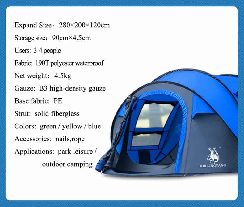 Virtually a portable chateau, this outdoor pop up tent boasts room for 4 people. Toss it lightly in the air and it instantly pops up, ready and set for camping. With waterproof bottom, breathable and wear resistant material, solid fibreglass strut, this tent provides maximum strength against the elements.