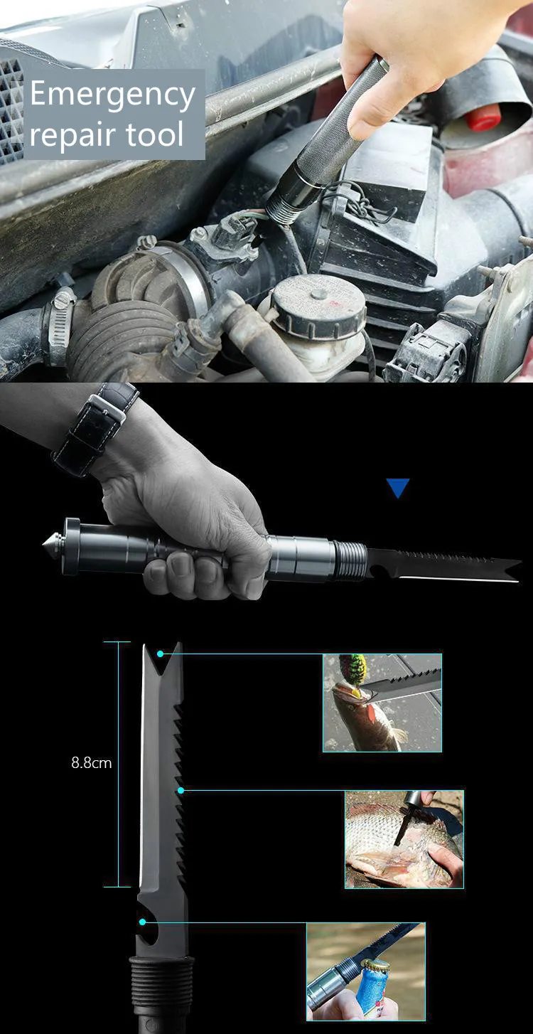 2. Extensions: Tactical stick/mountaineering stick(according to demand additional long rod with the use of)