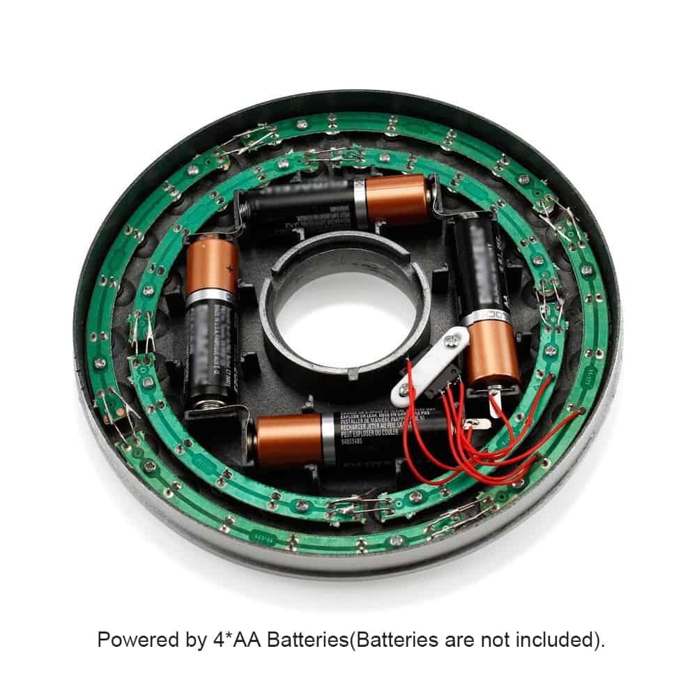 Powered by 4*AA batteries(Batteries are not included), providing up to 30 hours of lighting time. The LED lifespan can up to 100,000 hours.
