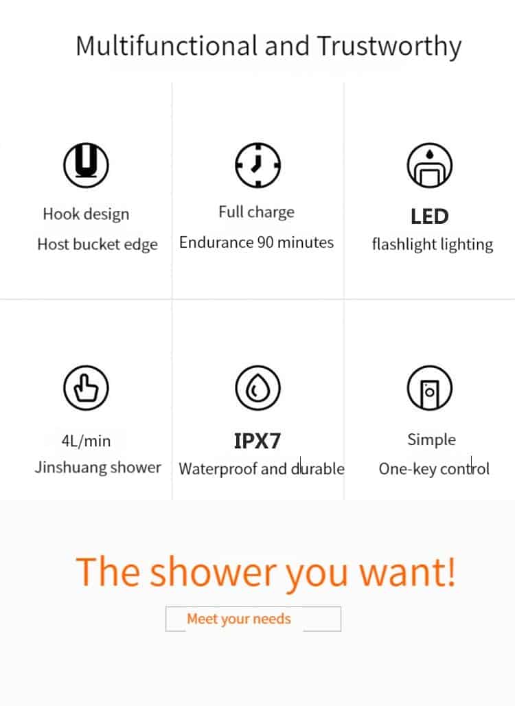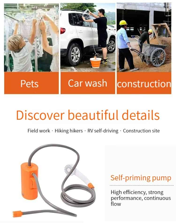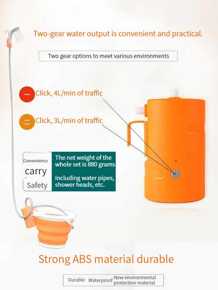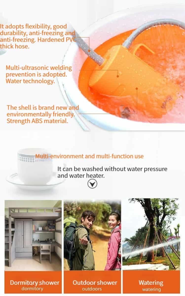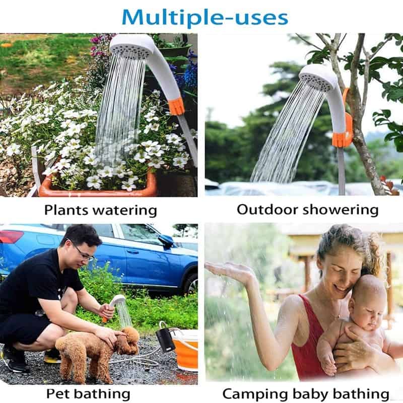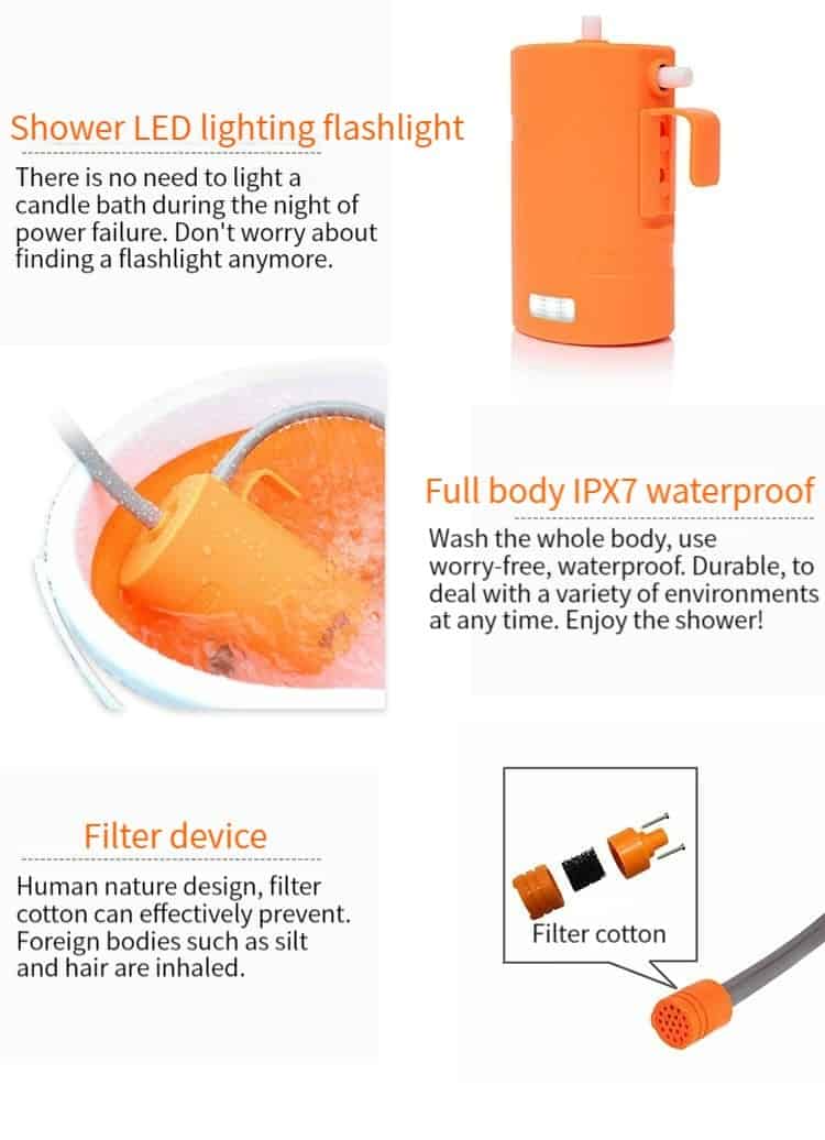 How to bathe while camping and traveling? Let’s use our Portable camp shower. You just place a shower in a bucket of water, it’s easy handheld device draws water from a bucket, converting it into a gentle, steady, shower-like stream that’s perfect for everything from personal bathing to watering flowers. When washing babies or toddlers, parents enjoy hands-free convenience with the unit’s integrated suction-cup and S-style hanging system. Meanwhile, adventurous campers solve their water woes thanks to the shower’s active built-in filtration feature. The showerhead serves multiple purposes, providing true on-the-go expedience you won’t find elsewhere. Buy it now!