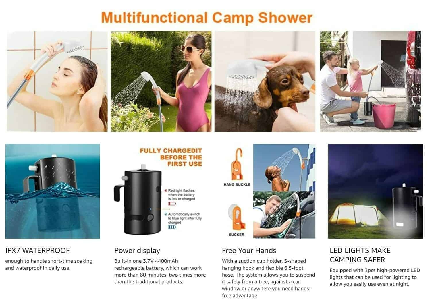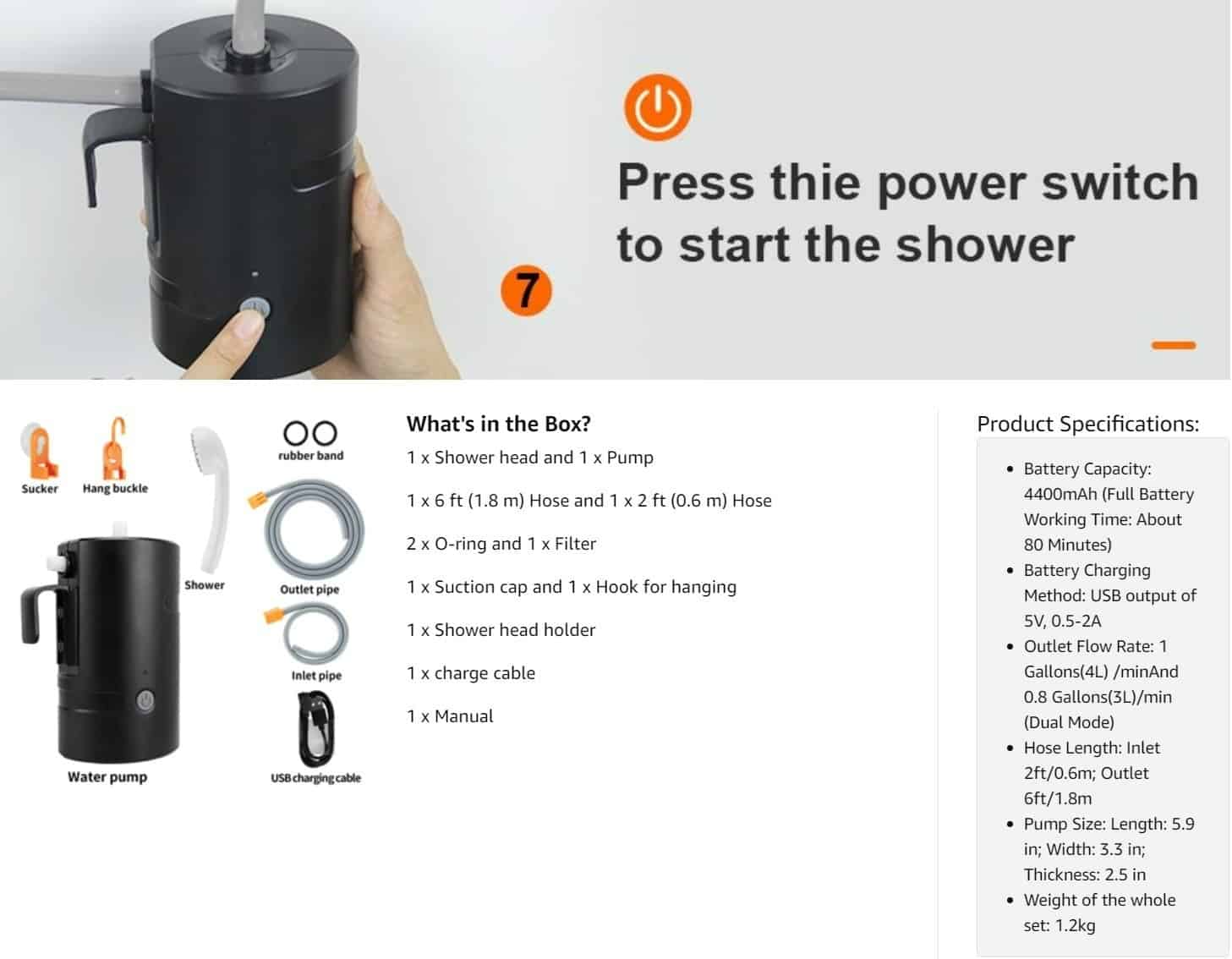 3) If you have any question or any issue with the portable shower, please contact us freely and we will address your concerns.