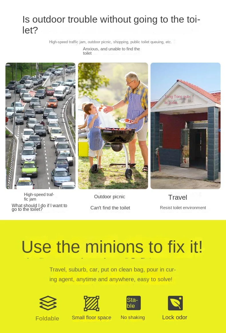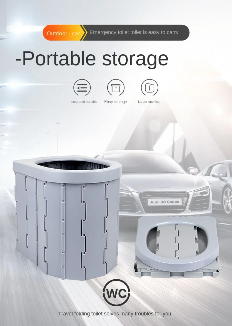 Portable folding toilet It canbe used not only as a toilet for outdoors, camping toilet, but also a storage and seat combination, trash can, small stool, storage box, indoor toilet for the elderly, vomiting bucket for pregnant women, etc.