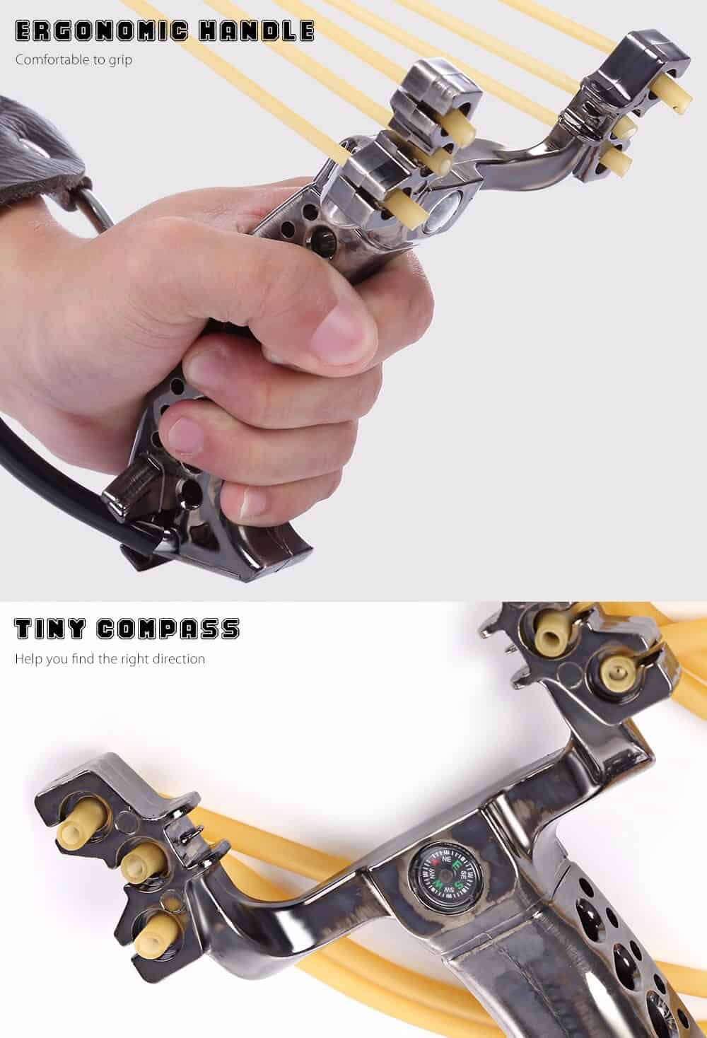 This Professional Slingshot is awesome! With 5 aiming sights, your shooting will be more accurate than ever; even beginners have no trouble! The detachable design makes it easy to carry and store, wherever you are.