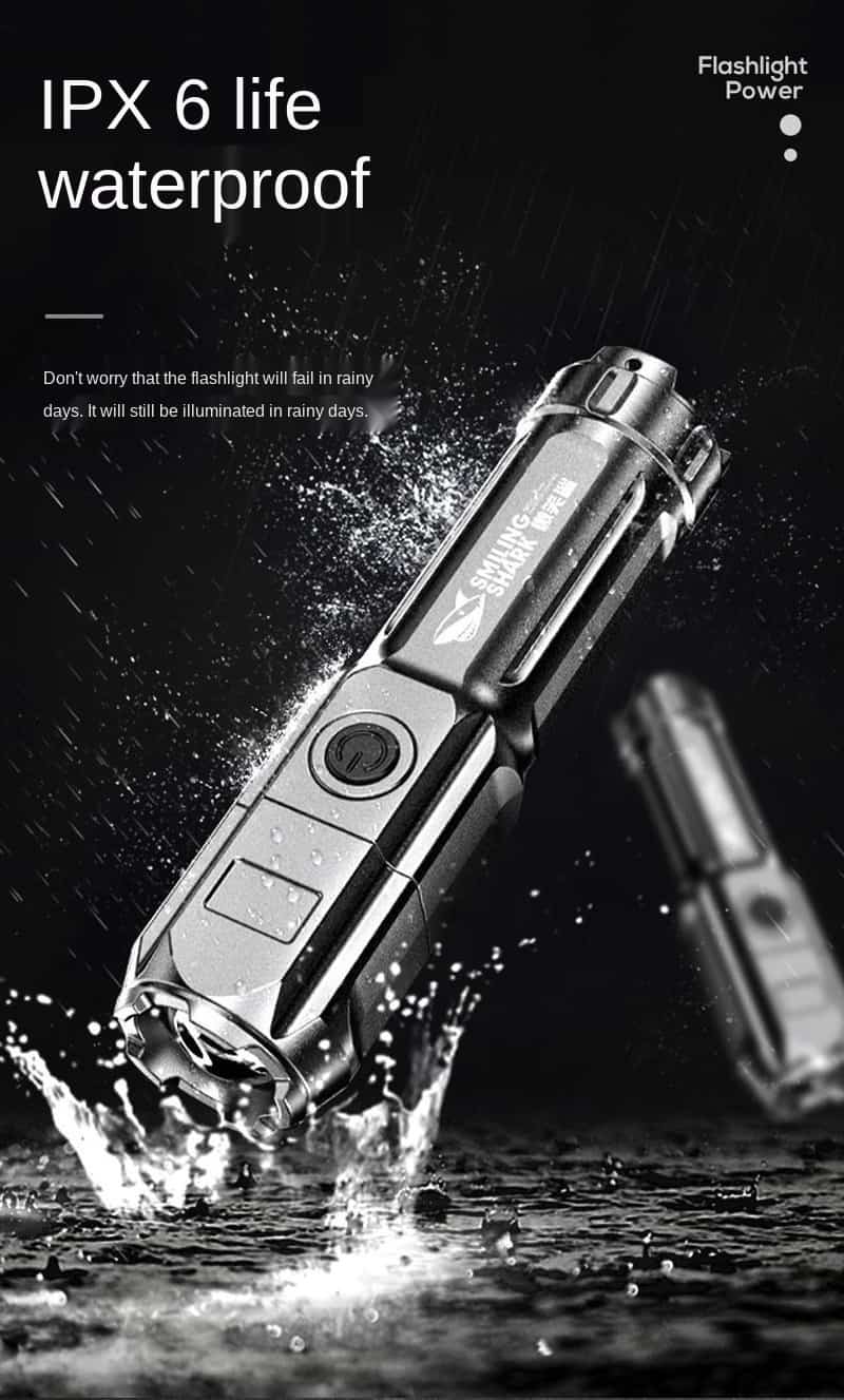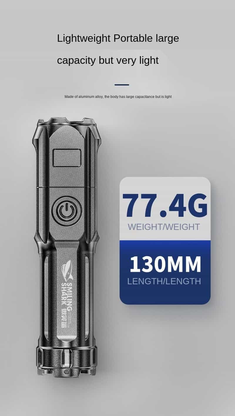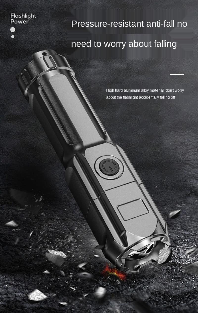 Are you looking for a flashlight that is durable and weather-resistant outside? Introducing our great High-focus rechargeable LED flashlight. The product is made of high-hardness ABS material, it is lightweight and good crush-resistant. It has strong light irradiation, high focus, waterproof and drop-proof, suitable for various scenes. This flashlight with a size of 13cm is very compact and convenient to carry with you. It is suitable for many terrains such as camping in the woods, going fishing, hiking, or going to cold places like snowy mountains. For an adventurous person, I really can’t ignore this product. Buy right now!