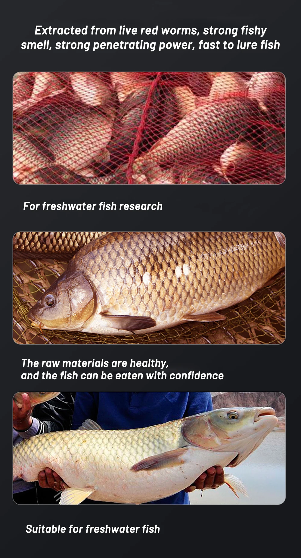 【Safe and Durable】Our fish attractants are made of safe materials, which are safe and harmless to fish and water. Red worm is a naturally occurring substance in aquatic animals. No residual problems and can be used safely.