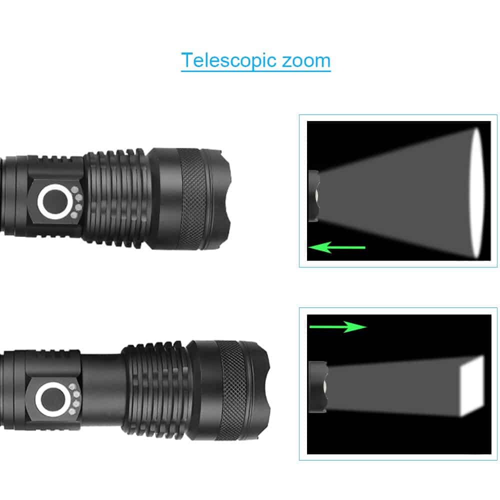 The Super Bright LED Flashlight is one of the brightest flashlights on the market, providing up to 3,000 Lumens. The Adjustable Zoom gives you the wide field of view and brightness that other flashlights just don’t have.