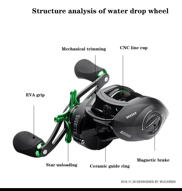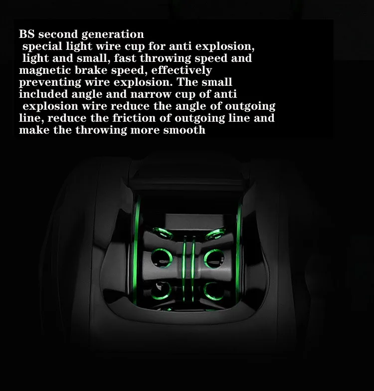 | Material:1. SIC Ceramic Guide Ring 2. EVA Grip 3. CNC Line Cup 4. Magnetic Brakes 5. Reinforced Nylon |