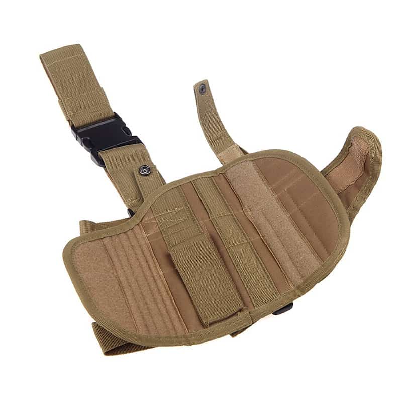 The Tactical Leg Holster is perfect for all handgun sizes including compact, medium and large. It also comes with a built-in front pouch – perfect for ammo or other accessory storage! The bottom is open to allow for holstering of guns with silencers, lasers or similar items attached.