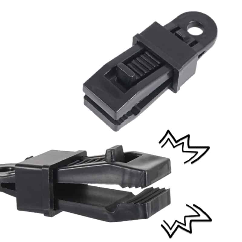 Our tarp clips securely attach to your tarps or blankets. The alligator mouth is specifically designed to offer a more stable closing between the tarp and clip, allows a more effective clamp only by squeezing it.