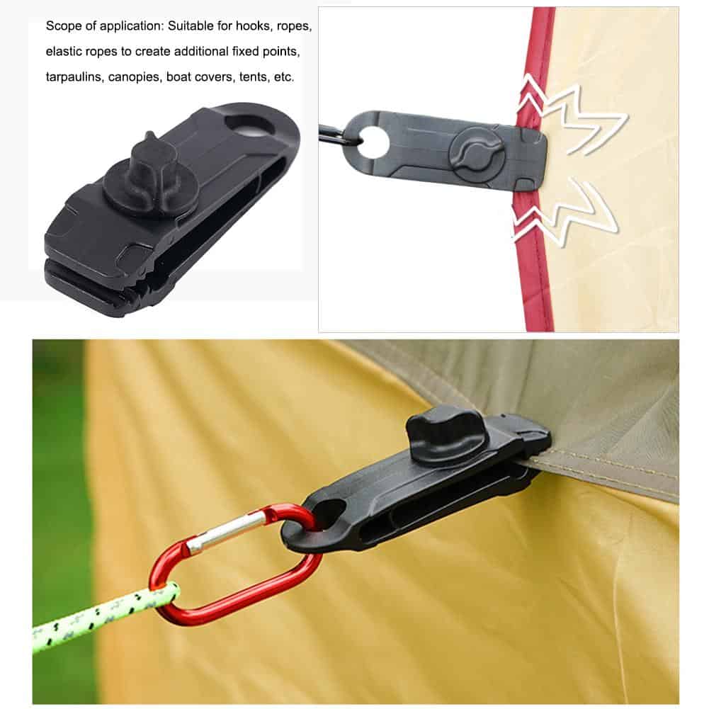 Use these clips to secure your awning, awning or tarpaulin without holes or grommets; provide instant anchor points that can be attached to any elastic rope, hook or rope to withstand strong winds.