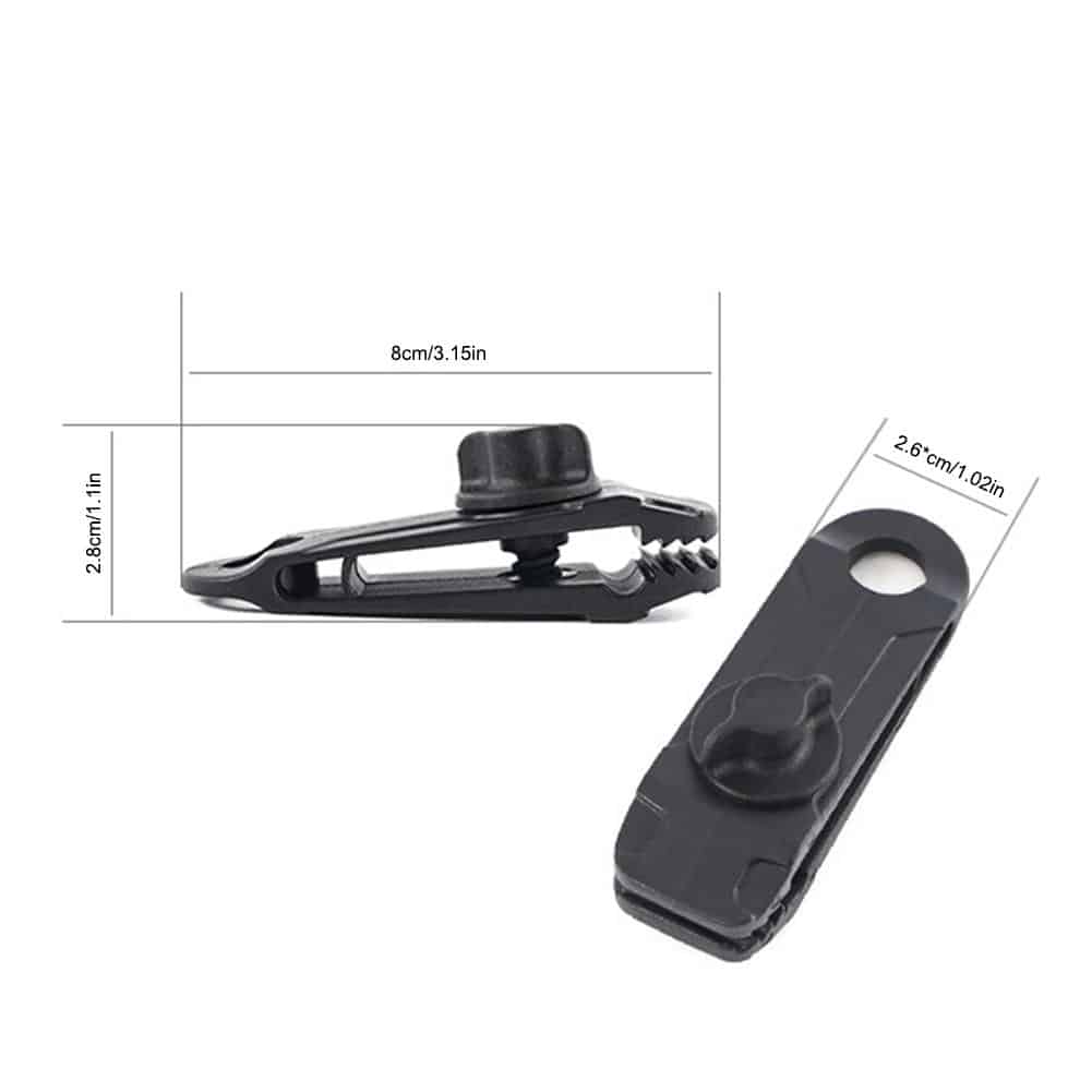 Do you ever struggle to set up your awning or tarpaulin? Don’t worry! The Heavy-duty tent clip will help you! With unique toothed crocodile mouth design and the thumbscrew to clamp the tarpaulin directly to provide strong gripping power, which makes the occlusion much more stable. It is safer to prevent the tarpaulin from falling. It provides an instant anchor point to attach any standard bungee cord, hooks or ropes ensure it can stably hold the tent when the tent is blown by the wind so you can enjoy your camping without worrying about the weather. Made of superior nylon material, can bear large pulling force and not easy to loose after buckle it onto tents, small damage to the fabric. Perfect for clamping outdoor camping tent, awnings, canopies, boat covers and more. Order now!