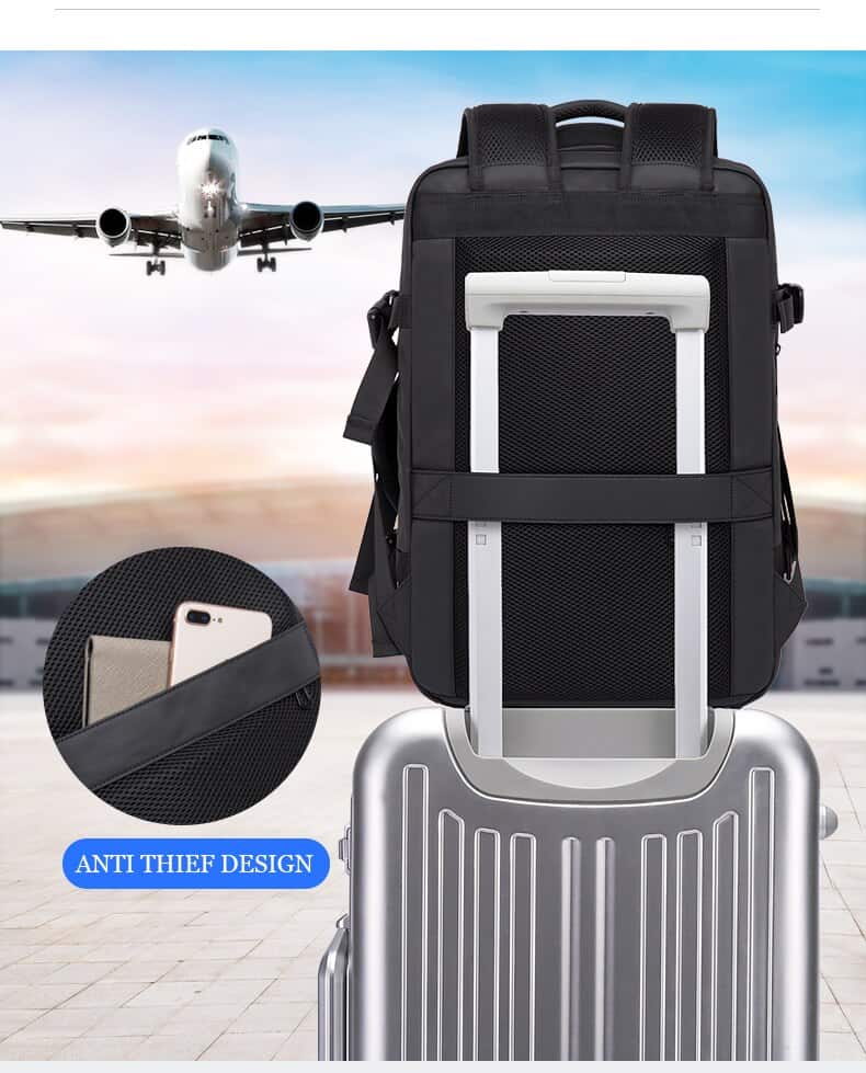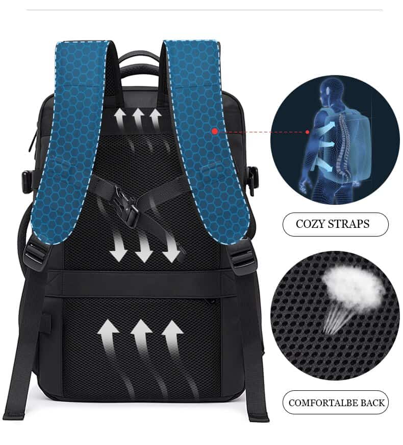 This Travel backpack is made of durable waterproof polyester, good air permeability and heat dissipation with two padded shoulder straps, offers lightweight carrying and strength reinforcement, relieve shoulder pressure, and maintain cool when wearing for a long time. And it’s hard, solid, and doesn’t fade.