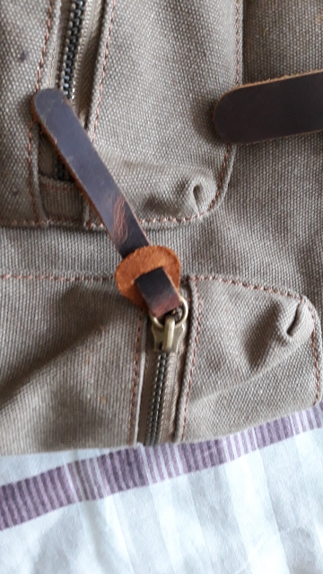 The bag looks nice. The fabric is nice but a little heavy. The color is more pale than the picture and the stitching colors are also in light color. Some seams are hand sewn like trapezoid, there is an example in the picture (usually invisible places). A little smell, all this is fine with me. But in many places the yarns appeared (in the pictures). Finally, the compartment (lining) is thin and the Velcro on the inside is badly sewn. I hardly use that compartment so that the Velcro part or lining won't tear off. Except for all this, I didn't have much trouble using it. There was no water in the light-moderate rain. I soon got used to the straps just a little hard. I didn't regret getting the bag, but I expected more careful stitches. The order reached my hand in a short time. Thanks store for fast shipping.